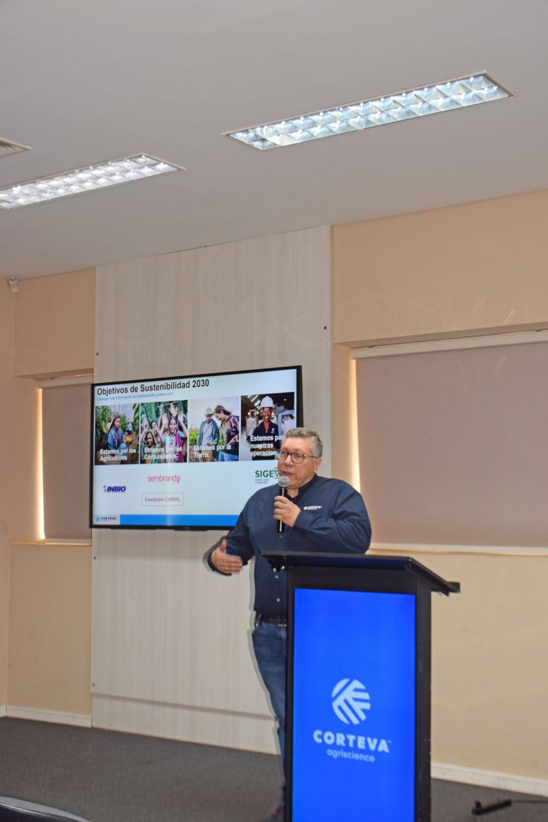 El Ing. Agr. Claudio Gaitán, Country Manager de Corteva Paraguay, resaltó que entre las metas sustentables de la compañía se establecieron cuatro objetivos que son: los productores, las comunidades, la tierra y los procesos sustentables.