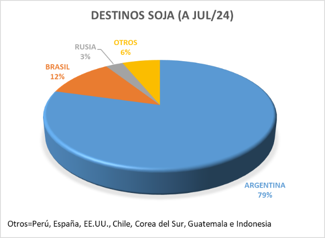La exportación de soja en grano en estos primeros siete meses del año permitió un ingreso de divisas por valor de USD 2529 millones, es decir, USD 196 millones más que el mismo periodo de 2023.