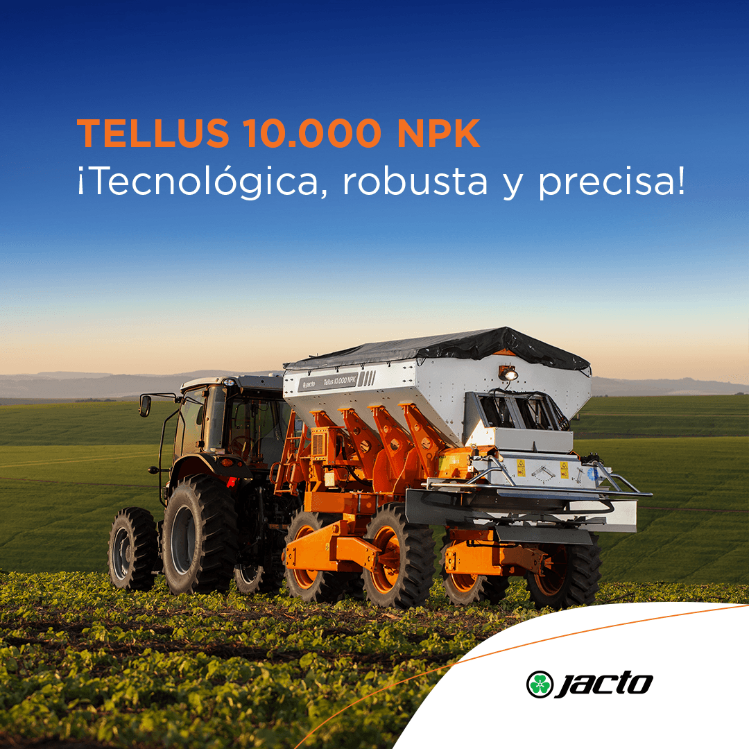 Con un tanque de 10 000 kg de capacidad máxima (5m³) y una franja de aplicación de hasta 50 metros para fertilizantes, Tellus 10.000 NPK es una máquina versátil que aporta precisión en la dosificación, facilidad de regulación y uniformidad de la franja de aplicación de fertilizantes, además de permitir la aplicación de productos en polvo.