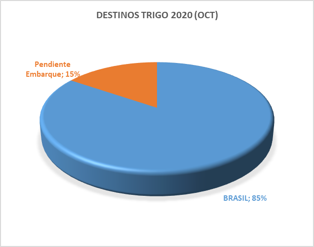 La Lic. Sonia Tomassone, asesora de comercio exterior de la Capeco, destacó que al mes de setiembre se han cerrado las exportaciones de trigo zafra 2019 por lo que este informe corresponde a las exportaciones de zafra nueva 2020, en donde se observa una merma significativa del envío del cereal.