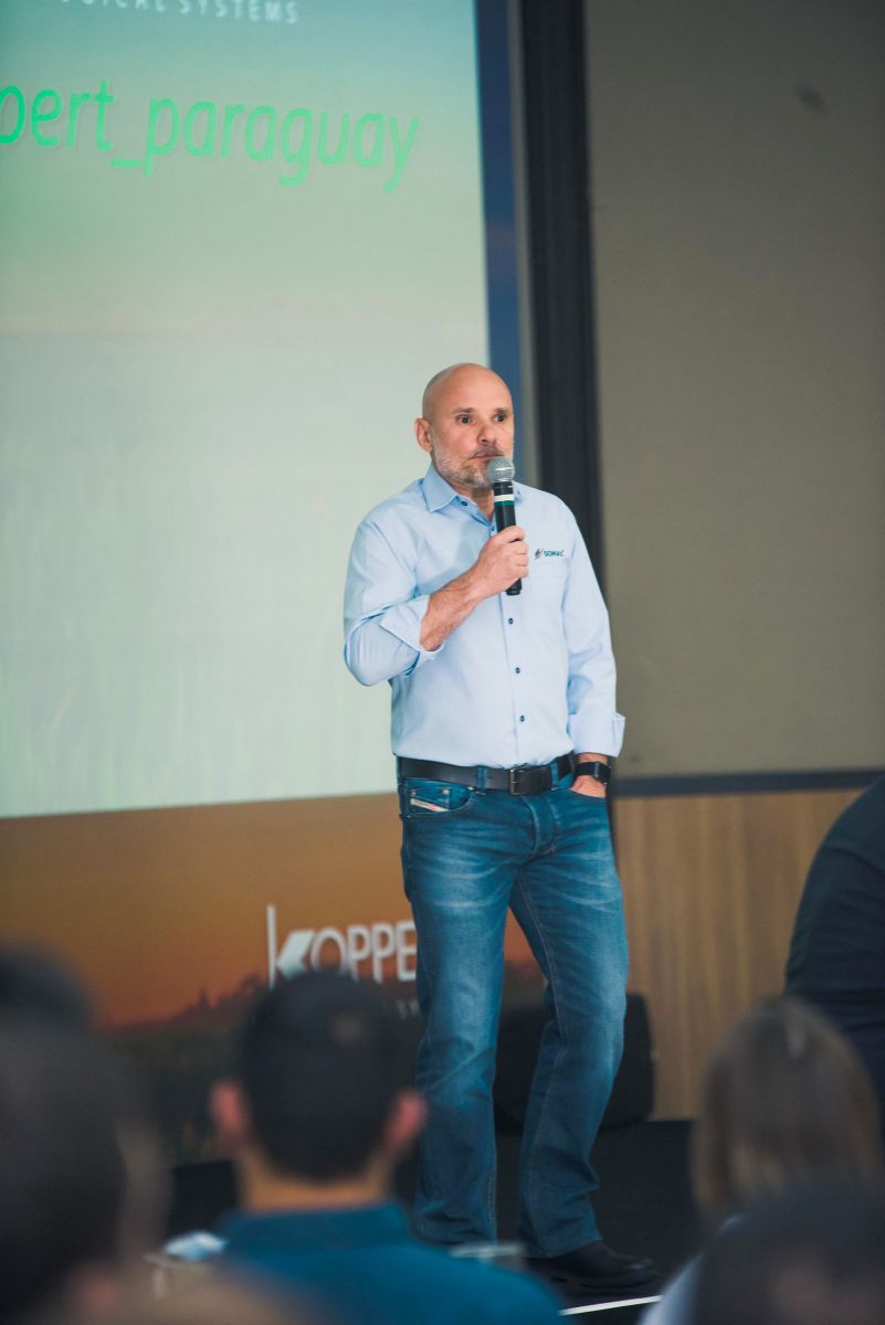 Abrió el evento el presidente de Somax, Fábio Bedin, quien dio la bienvenida a los asistentes. “Para nosotros, este evento es extremadamente importante, porque es el marco de nuestra alianza con Koppert, que iniciamos hace poco más de 2 años. Debido a la pandemia, no tuvimos la oportunidad de reunirnos con nuestros clientes y nuestro equipo en un evento”, destacó. “Y es muy importante porque podemos divulgar todas las tecnologías que ofrece Koppert, como soluciones para la agricultura, a todo Paraguay. Koppert tiene mucho que ver con nosotros… Somax es una empresa que desarrolla productos y busca traer tecnologías y novedades para el productor, y Koppert trae una importante gama de productos biológicos, que son sustentables y que resuelven problemas del agricultor. Para algunas situaciones de plagas y enfermedades, los productos convencionales no tienen la eficacia que muestran los biológicos”.