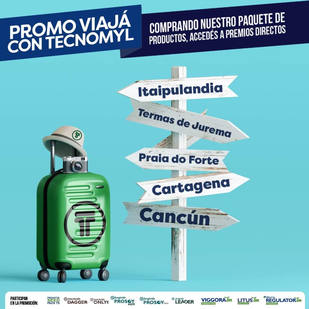“Pueden participar todos los productores que adquieran un paquete de productos obligatorios, cargando sus facturas en la web de Tecnomyl para habilitar la premiación”, destacó Walmor Roim, gerente de Marketing de la empresa. “Los premios incluyen los pasajes, el hospedaje y la alimentación del hotel”.