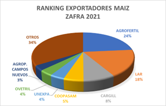 Otros exportadores destacados fueron Agropecuaria Campos Nuevos S.A. (3 %) y otros, que ocuparon el 34 %.