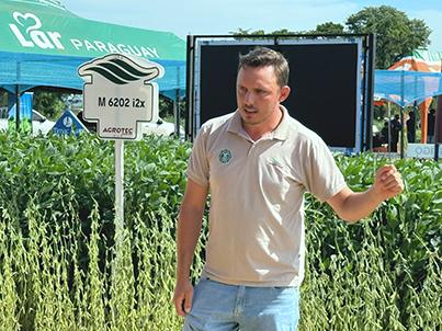 Agrotec acompañó por quinta vez la jornada que reunió a numerosos productores y técnicos de la región, consolidándose una vez más como un espacio clave para el intercambio de conocimientos y la actualización en genética y manejo agrícola. En ese marco, Douglas Meurer, consultor técnico de negocios (CTN) de Agrotec, resaltó la posibilidad de compartir propuestas y experiencias con los socios de la cooperativa. Entre las principales novedades, Agrotec presentó dos materiales exclusivos de soja. Por una parte, el 64IX64 I2X, una variedad exclusiva de Agrotec, con ciclo de maduración 6.4, recomendado para siembras desde mediados de septiembre, con buena adaptabilidad a distintas condiciones de fertilidad, excelente sanidad y destacado peso de grano.
