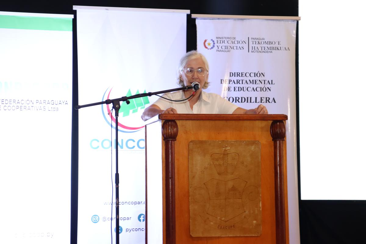 Por su parte, la presidenta de la CONCOPAR, Simona Cavazzutti, se dirigió a los educadores recordándoles su papel central en el proceso formativo. "El cooperativismo no es algo que se aprende solo en los libros; es algo que se tiene que vivir en el aula, en la familia y en la sociedad. Nuestra responsabilidad es formar personas que sepan valerse por sí mismas, que entiendan el valor del trabajo, la solidaridad y la justicia social", expresó Cavazzutti.