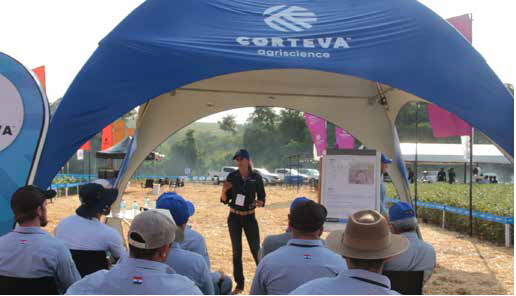 Los profesionales de Corteva brindan permanentemente trabajos de entrenamiento no solo para que el agricultor o el técnico pueda lograr desarrollar con la mayor eficacia el desempeño de los productos, sino que también se logre en tiempo y forma la transferencia de tecnología, para que, cumpliendo con las recomendaciones, se pueda responder a las exigencias actuales de una agricultura que se volvió más desafiante en cuanto a aplicaciones se refiere y por lo que requiere del soporte y respaldo permanente.