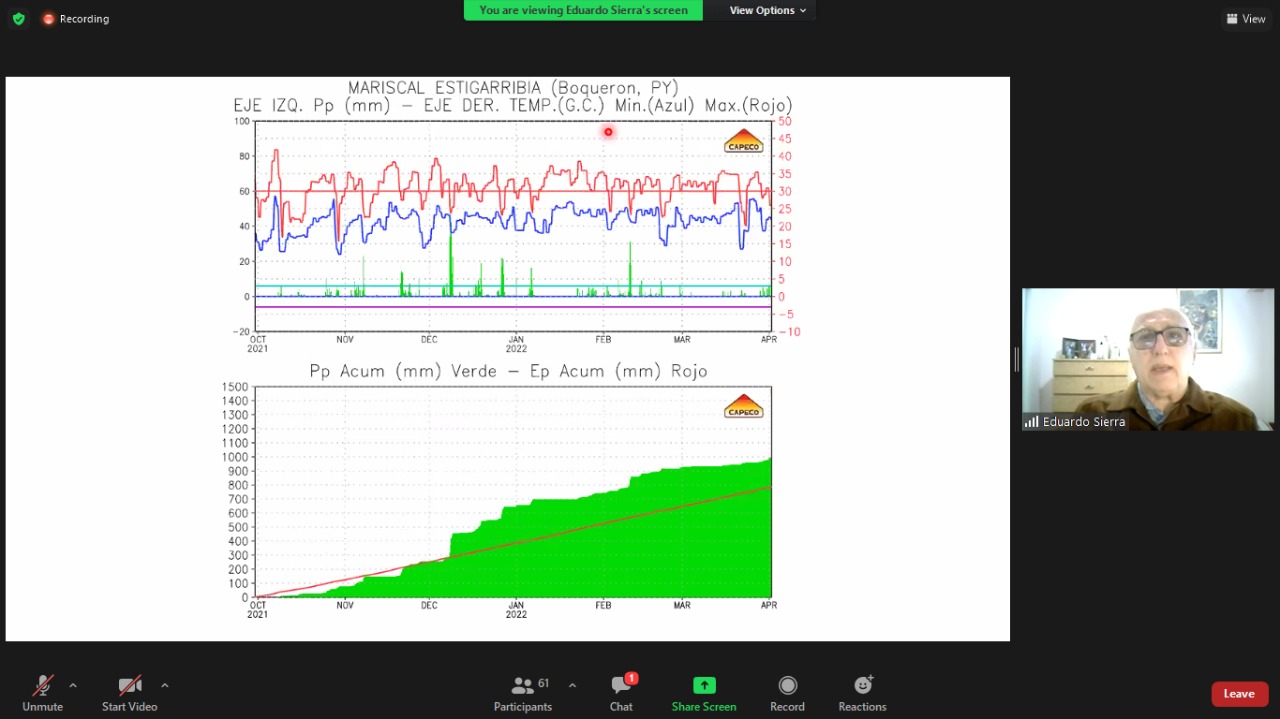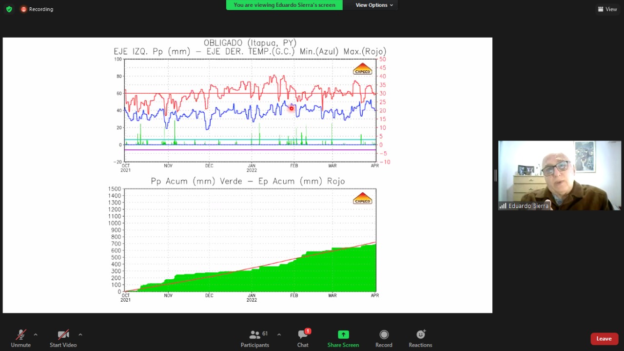 Sierra recordó que esta temporada 2021/2022 estamos ante la presencia del fenómeno climático La Niña (débil), con lo cual vamos a estar por debajo de los promedios en cuanto a precipitaciones.