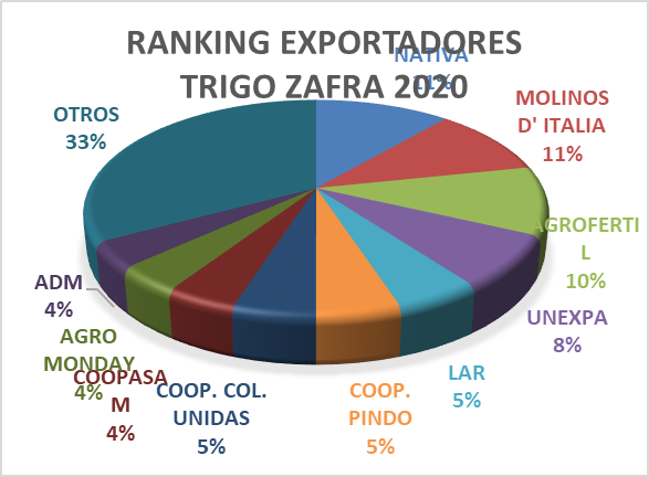 Unas 40 empresas fueron responsables de la exportación de trigo zafra 2020.